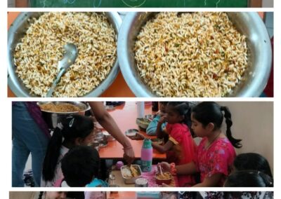 The children eagerly gathered for the food preparation session where guided by teachers they prepared some yummy Bhelpuri. After lunch, various games were organized for the children. The day was filled with fun and laughter.