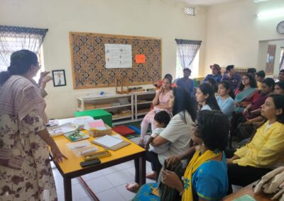 Few works of children were shared. The benefits of self-directed approach to the child were also discussed. The second plane child characteristics and their needs were discussed at length and emphasis was laid on how to connect the child’s interest with learning. Parents found the session to be informative and useful in understanding the child. The session also gave light on how to support the child at home.