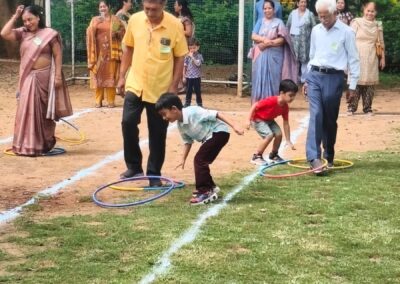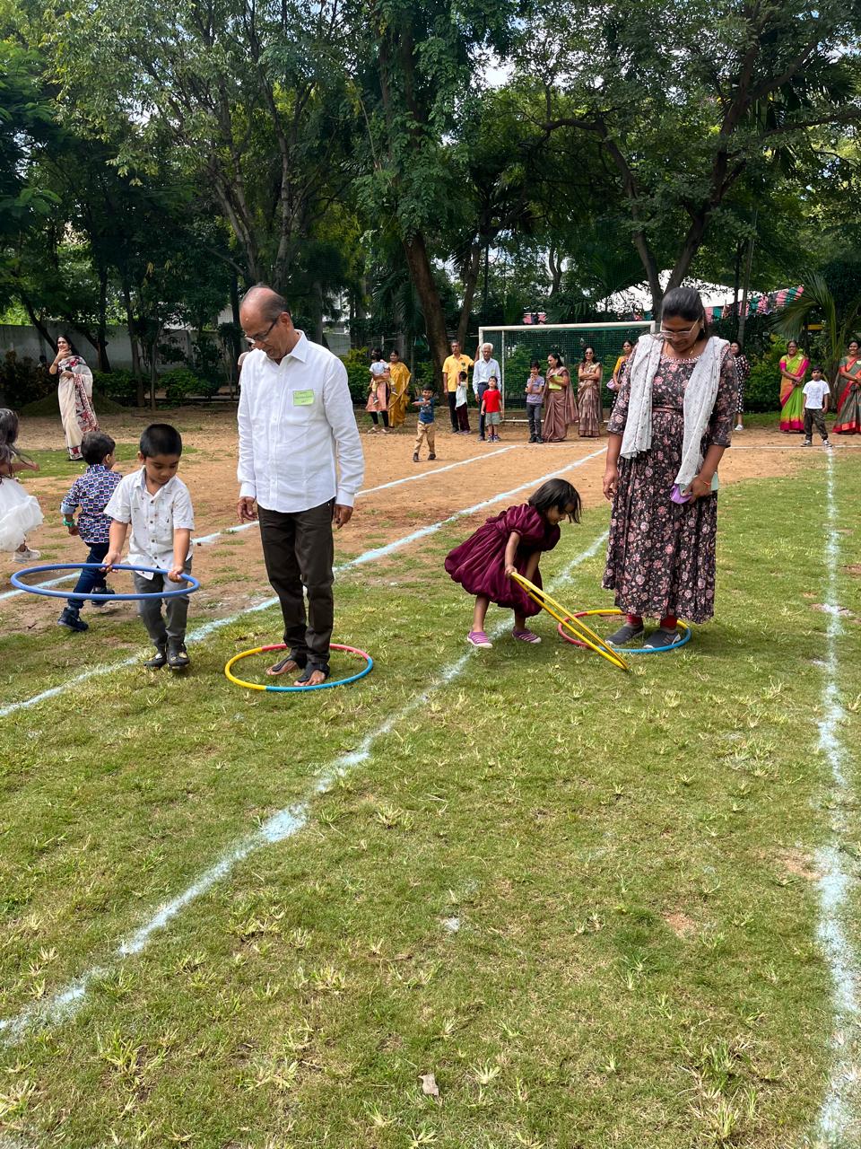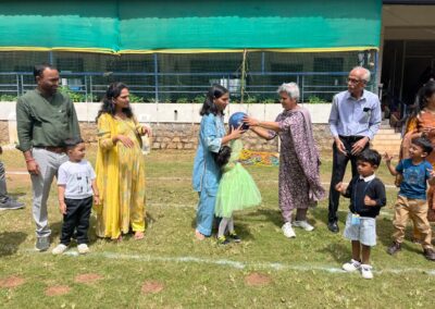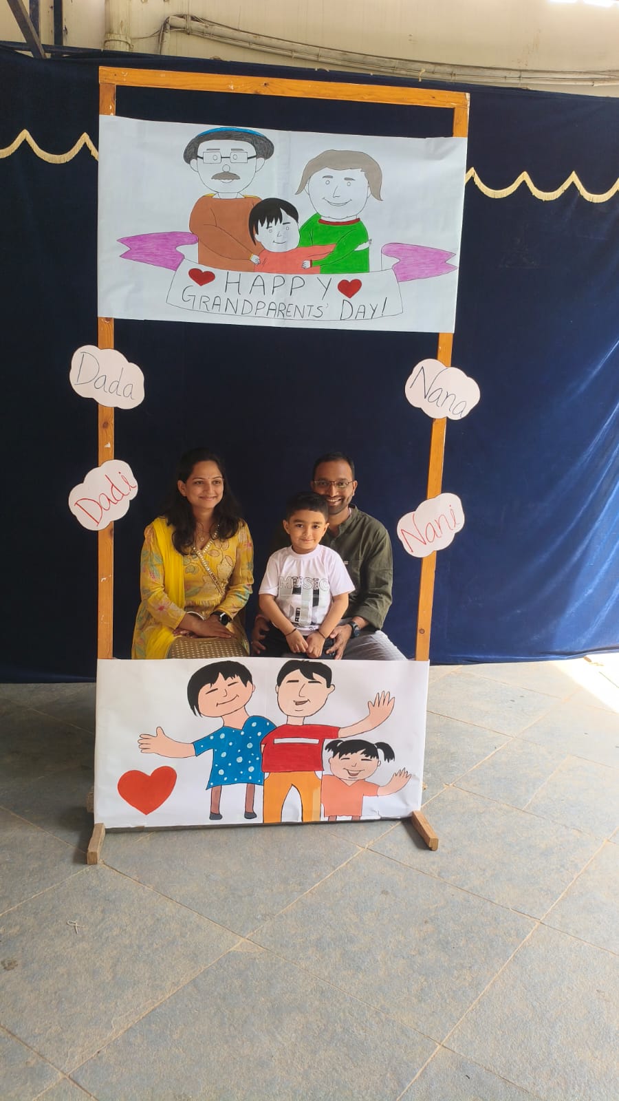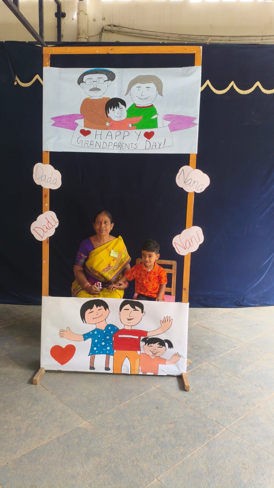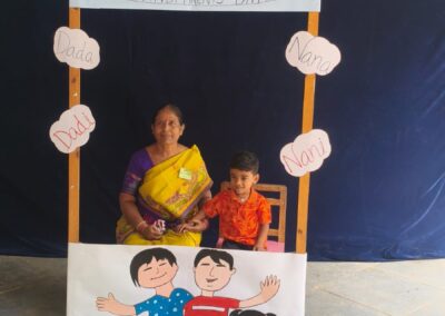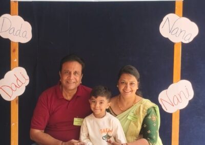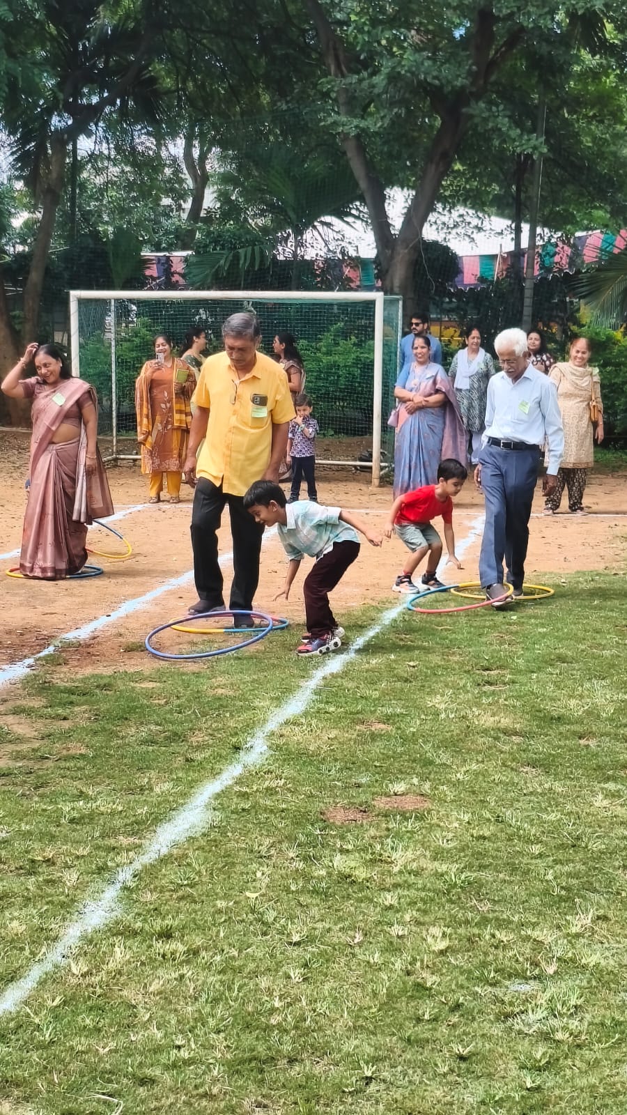 On 30th August, our Primary Montessori children joyfully celebrated Grandparents’ Day with a warm welcome to all the grandparents. The children presented a delightful dance performance, which was so loved that the grandparents requested to see it once again. A selfie booth added to the excitement, capturing memorable moments. Fun games such as Hula-hoop balancing walk, Passing the ball (like musical chairs), and special activities planned with both grandparents and grandchildren created lively participation and laughter. To conclude the celebration, children expressed their love and gratitude by gifting handmade greeting cards and earthen pots to their grandparents.