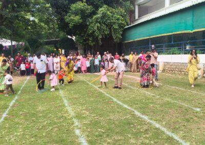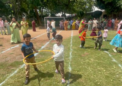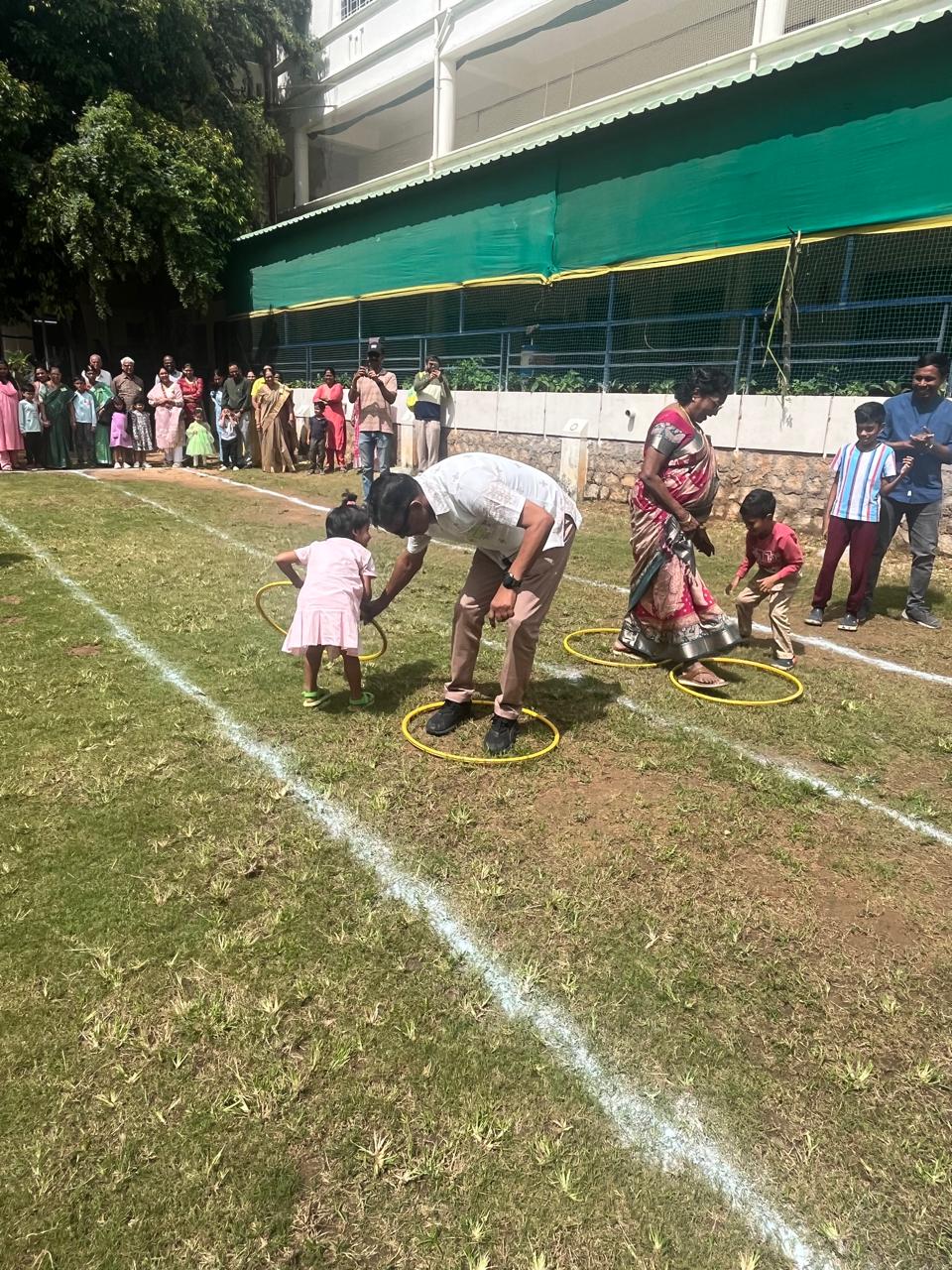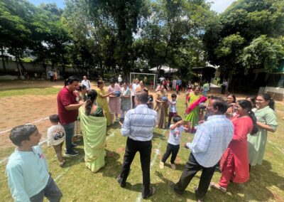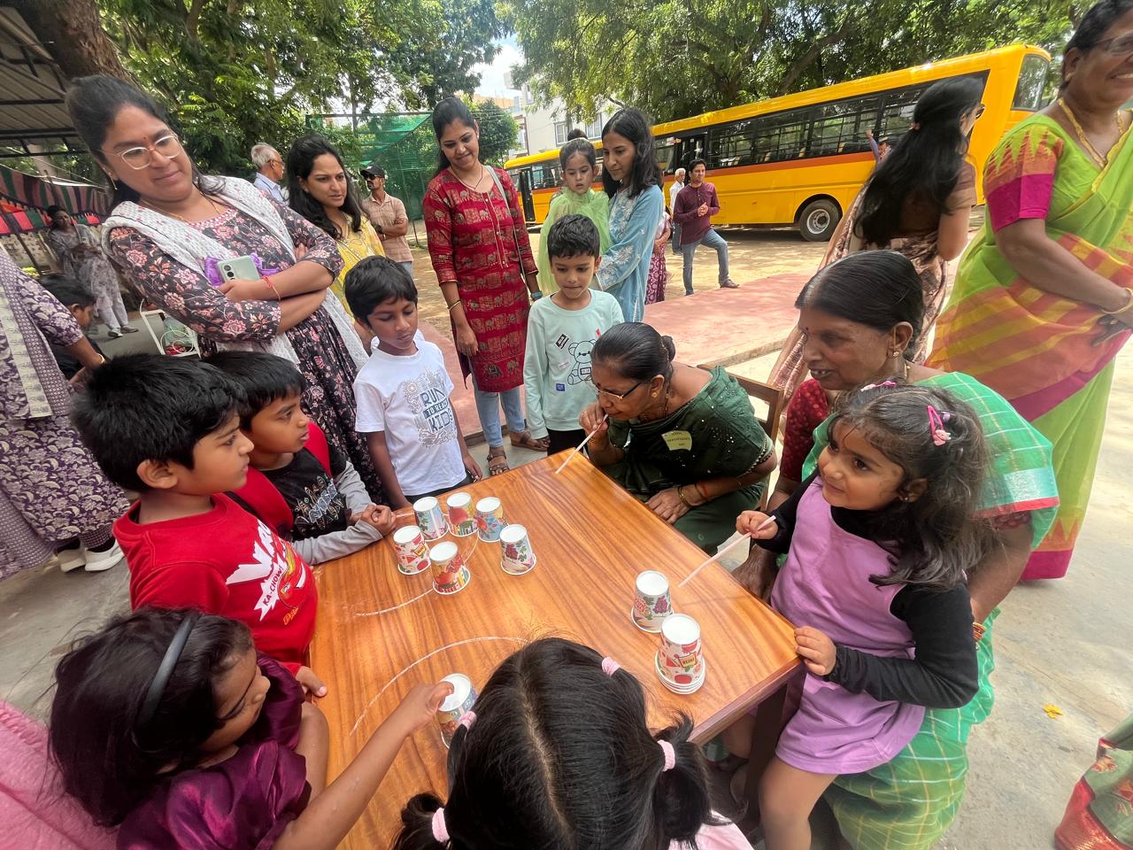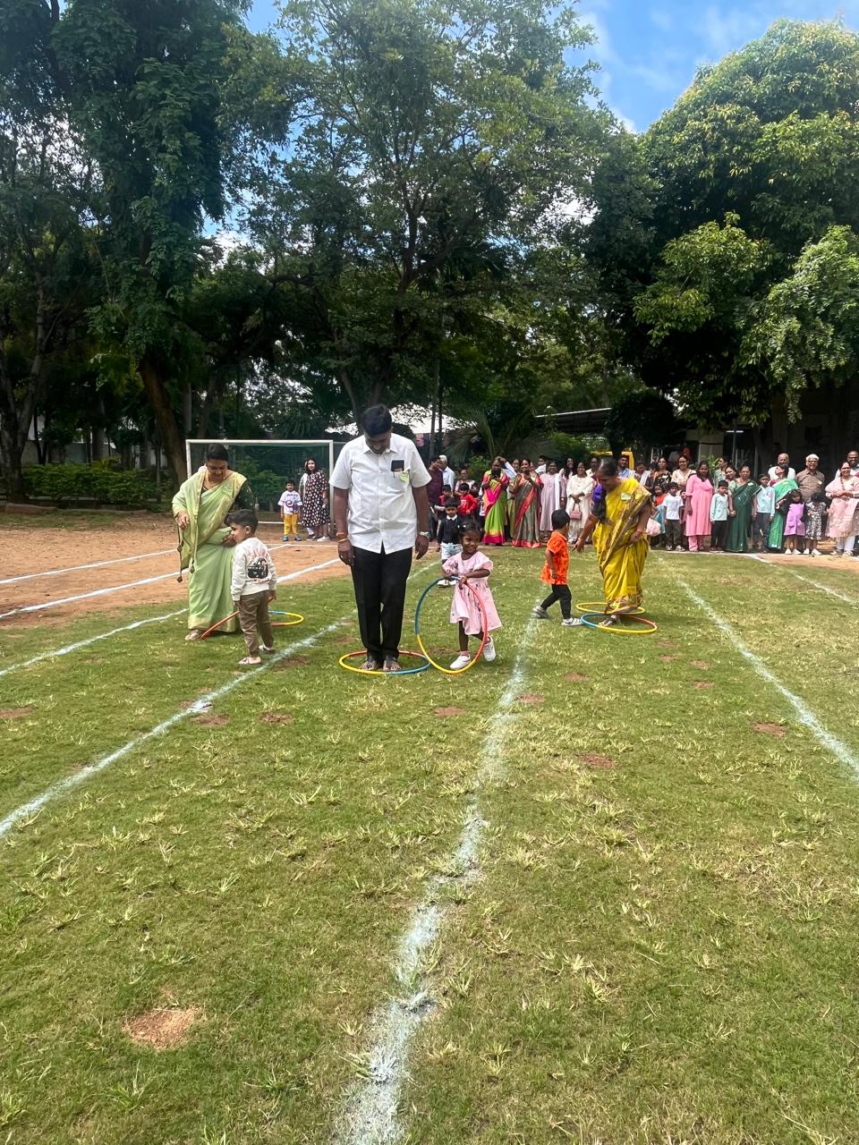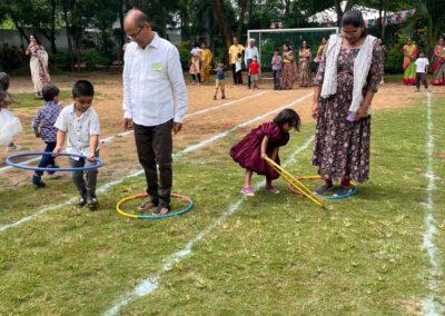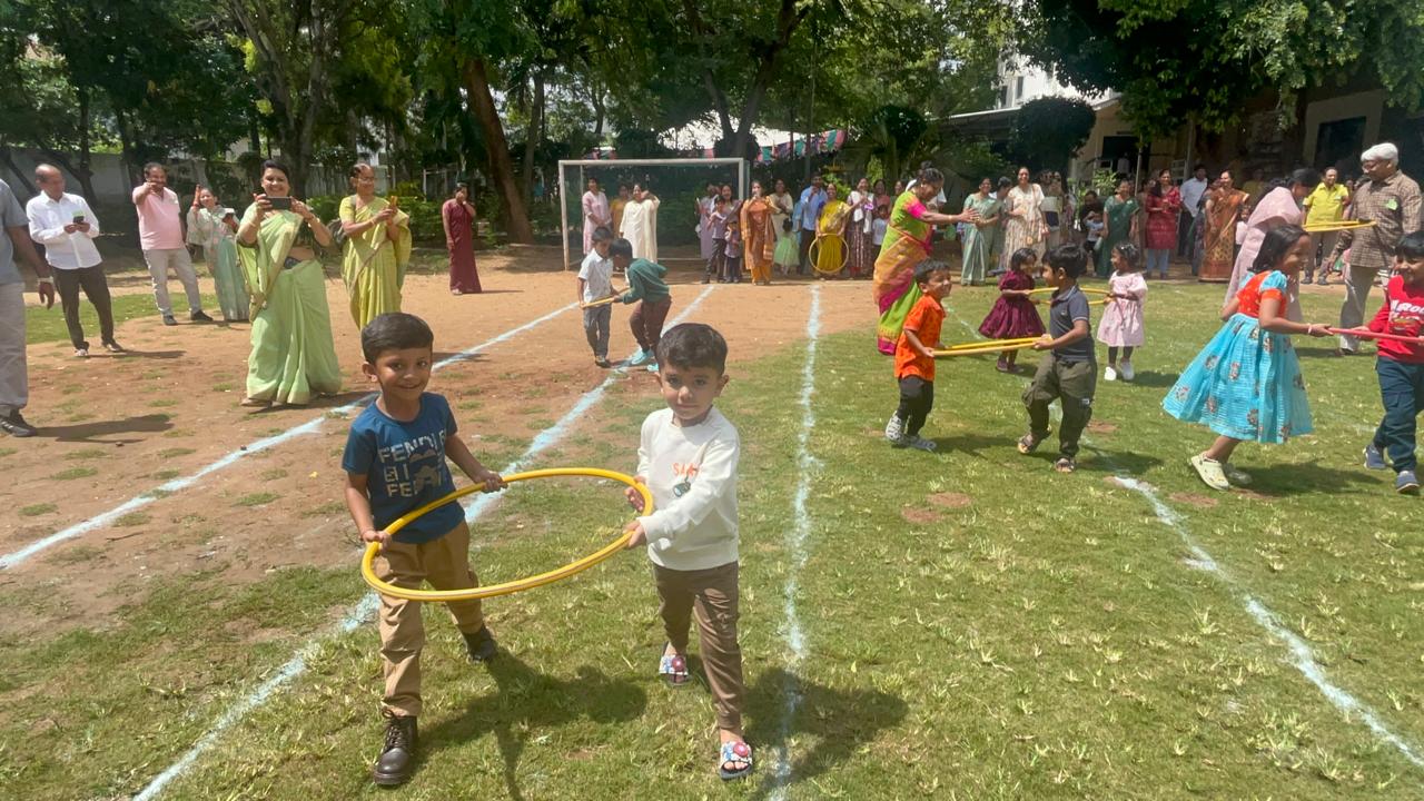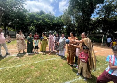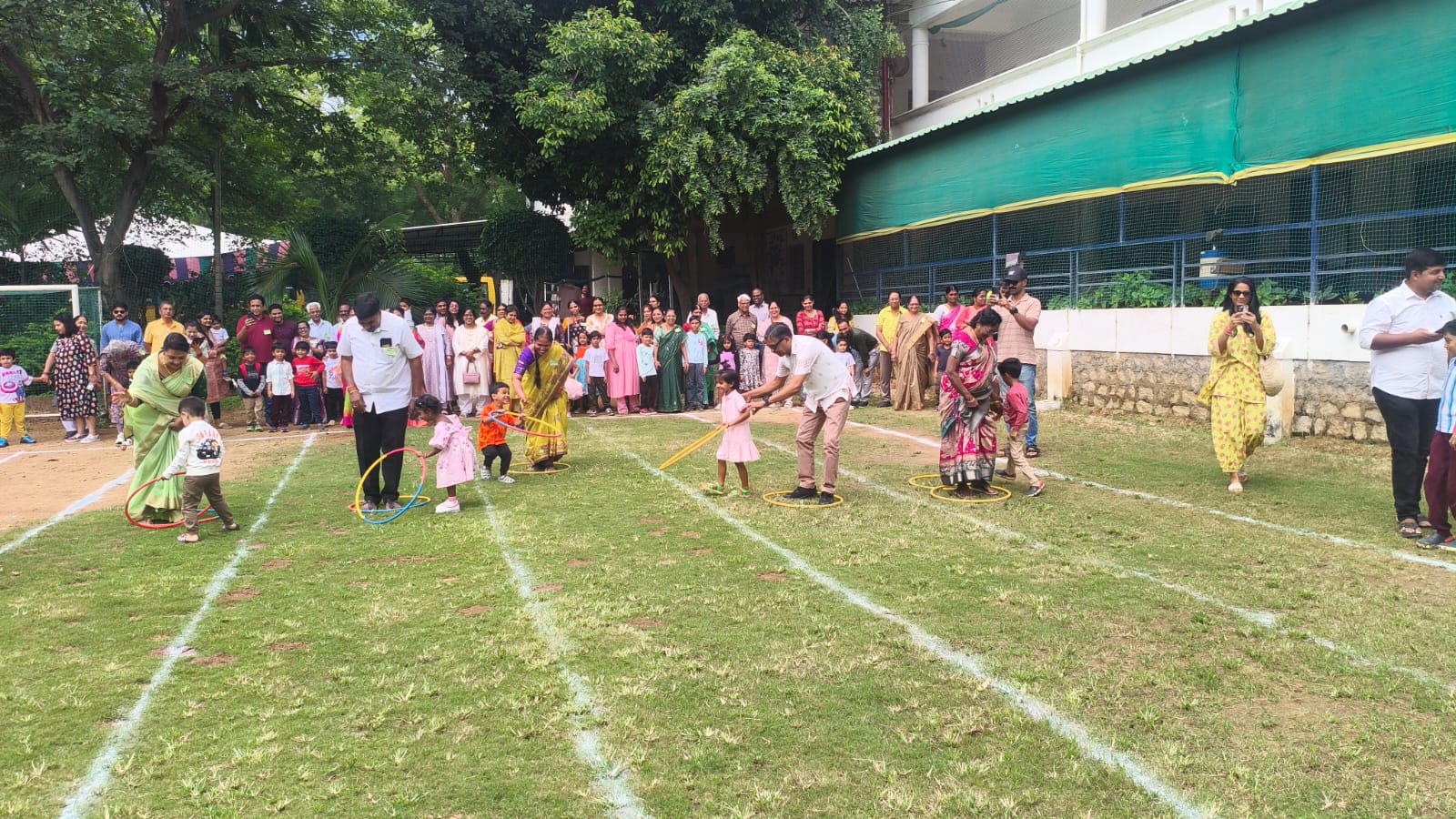 On 30th August, our Primary Montessori children joyfully celebrated Grandparents’ Day with a warm welcome to all the grandparents. The children presented a delightful dance performance, which was so loved that the grandparents requested to see it once again. A selfie booth added to the excitement, capturing memorable moments. Fun games such as Hula-hoop balancing walk, Passing the ball (like musical chairs), and special activities planned with both grandparents and grandchildren created lively participation and laughter. To conclude the celebration, children expressed their love and gratitude by gifting handmade greeting cards and earthen pots to their grandparents.