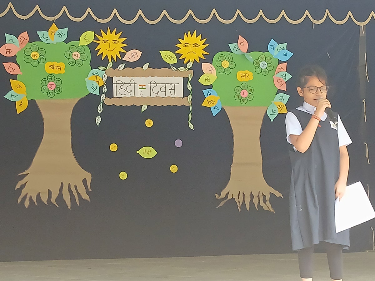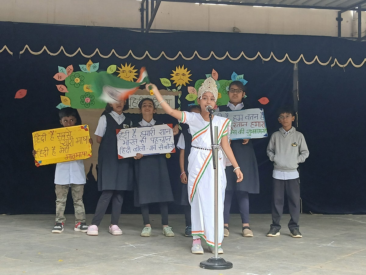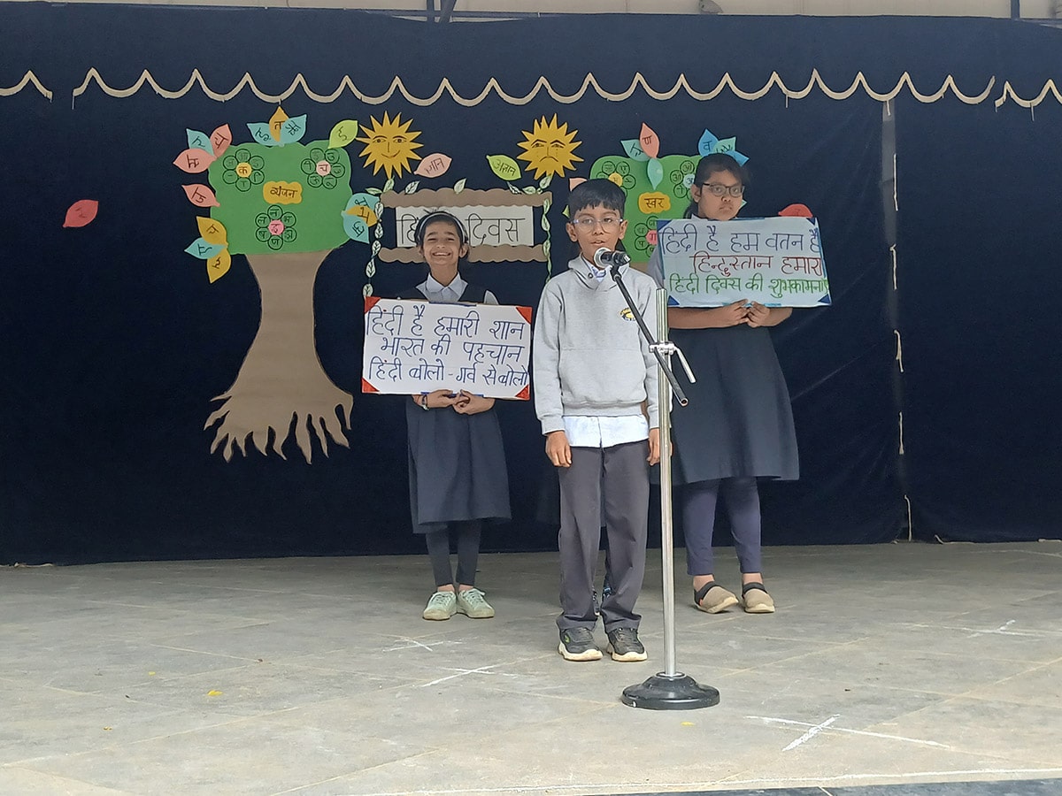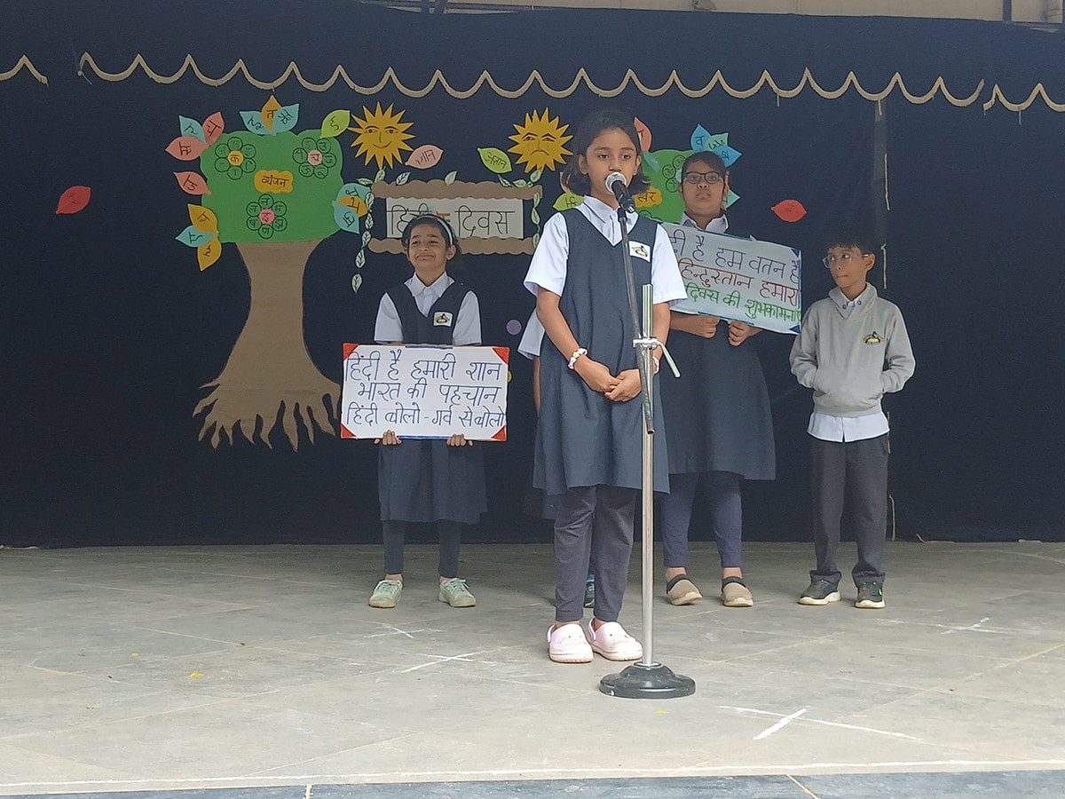 हिंदी की सुंदरता और समृद्धता का उत्सव मनाने के लिए, हमारे प्राइमरी और एलिमेंट्री वर्गों के छात्रों ने पूरे उत्साह और रचनात्मकता के साथ भाग लिया। कार्यक्रम में कविताएँ, गीत, नृत्य प्रस्तुतियाँ और नारों का एक सुंदर संगम देखने को मिला, जो हिंदी के प्रति बच्चों के प्रेम और गर्व को दर्शाता है।
