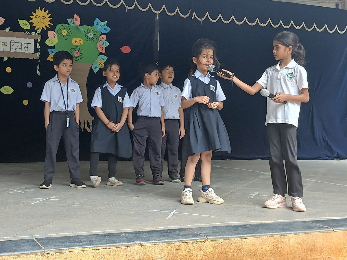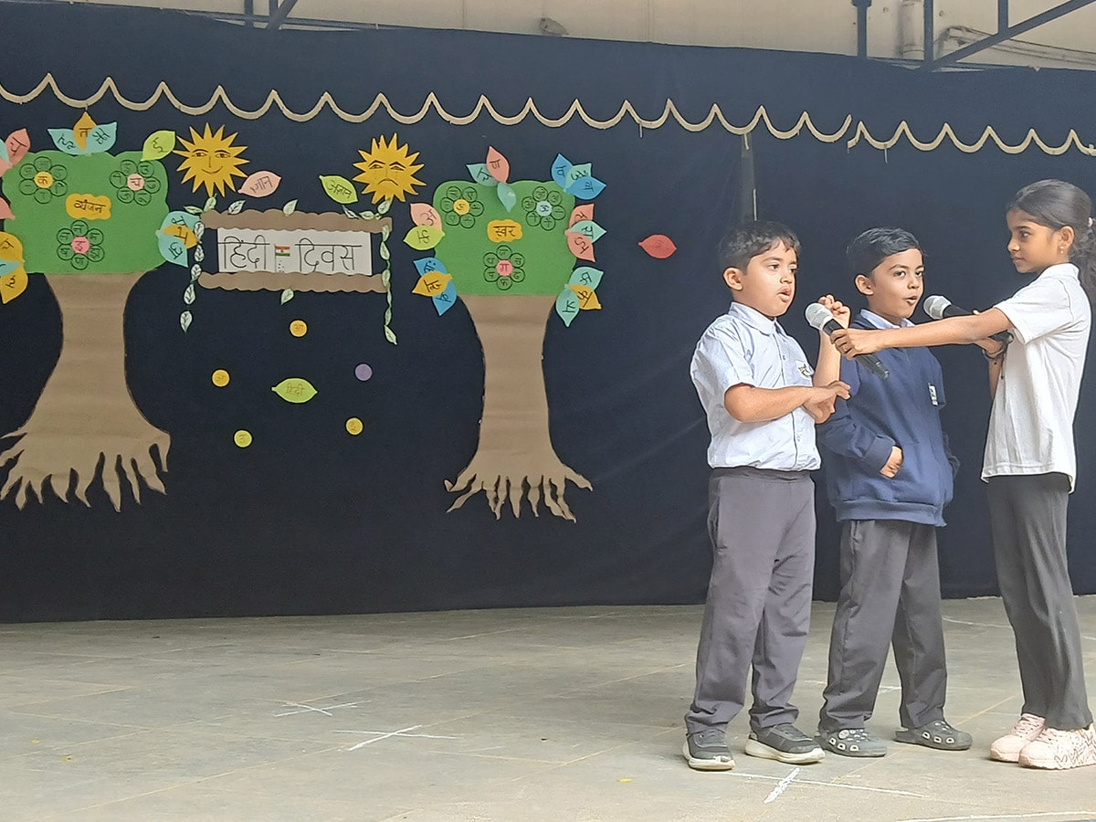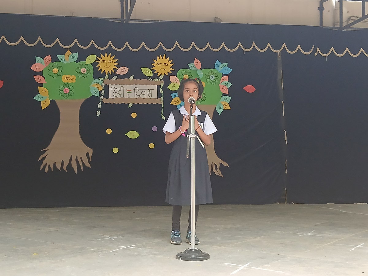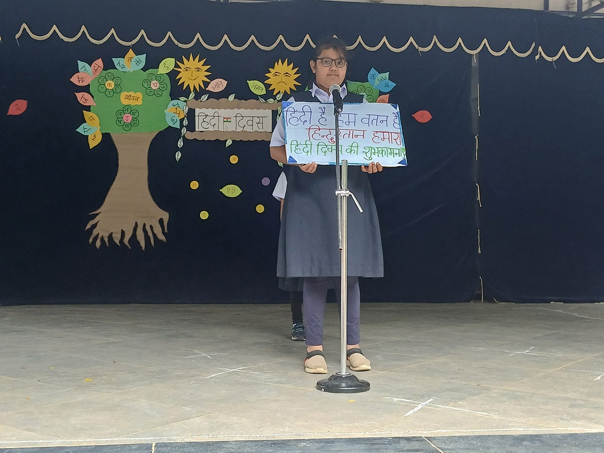 हिंदी की सुंदरता और समृद्धता का उत्सव मनाने के लिए, हमारे प्राइमरी और एलिमेंट्री वर्गों के छात्रों ने पूरे उत्साह और रचनात्मकता के साथ भाग लिया। कार्यक्रम में कविताएँ, गीत, नृत्य प्रस्तुतियाँ और नारों का एक सुंदर संगम देखने को मिला, जो हिंदी के प्रति बच्चों के प्रेम और गर्व को दर्शाता है।