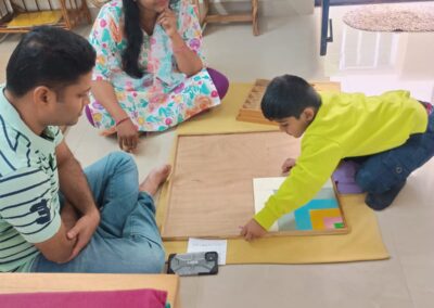 Children showcased activities from all areas of the Montessori curriculum, including Practical Life, Sensorial, Math, Language, and Culture. Parents were actively involved, engaging in the activities alongside their children and experiencing first-hand the Montessori emphasis on learning through exploration and manipulation of materials. The event created a joyful, interactive atmosphere that reflected the essence of Montessori education and strengthened the connection between home and school.
