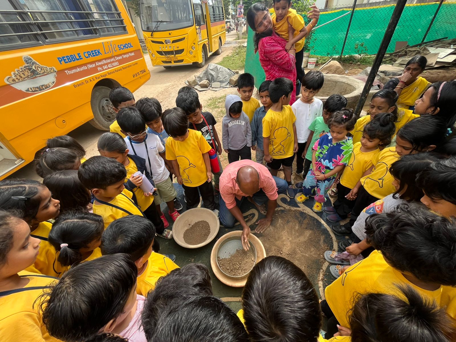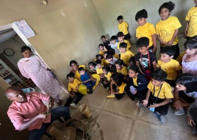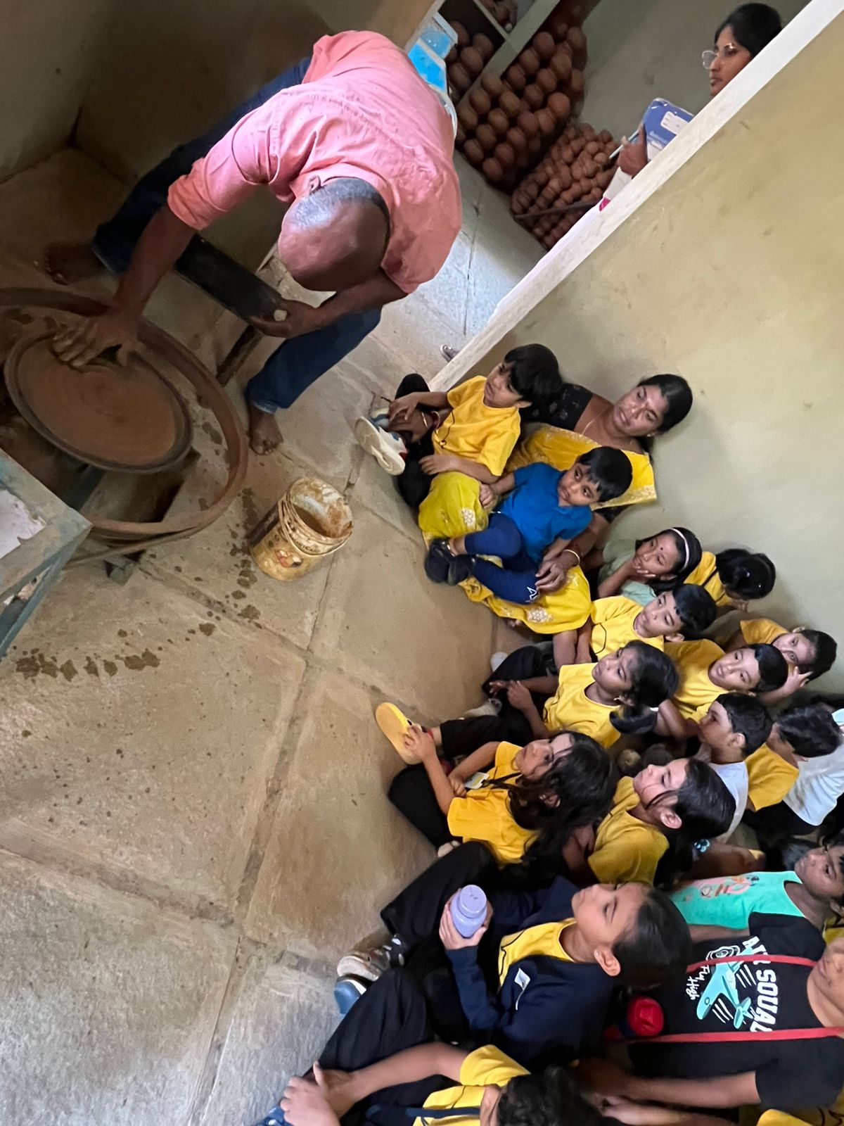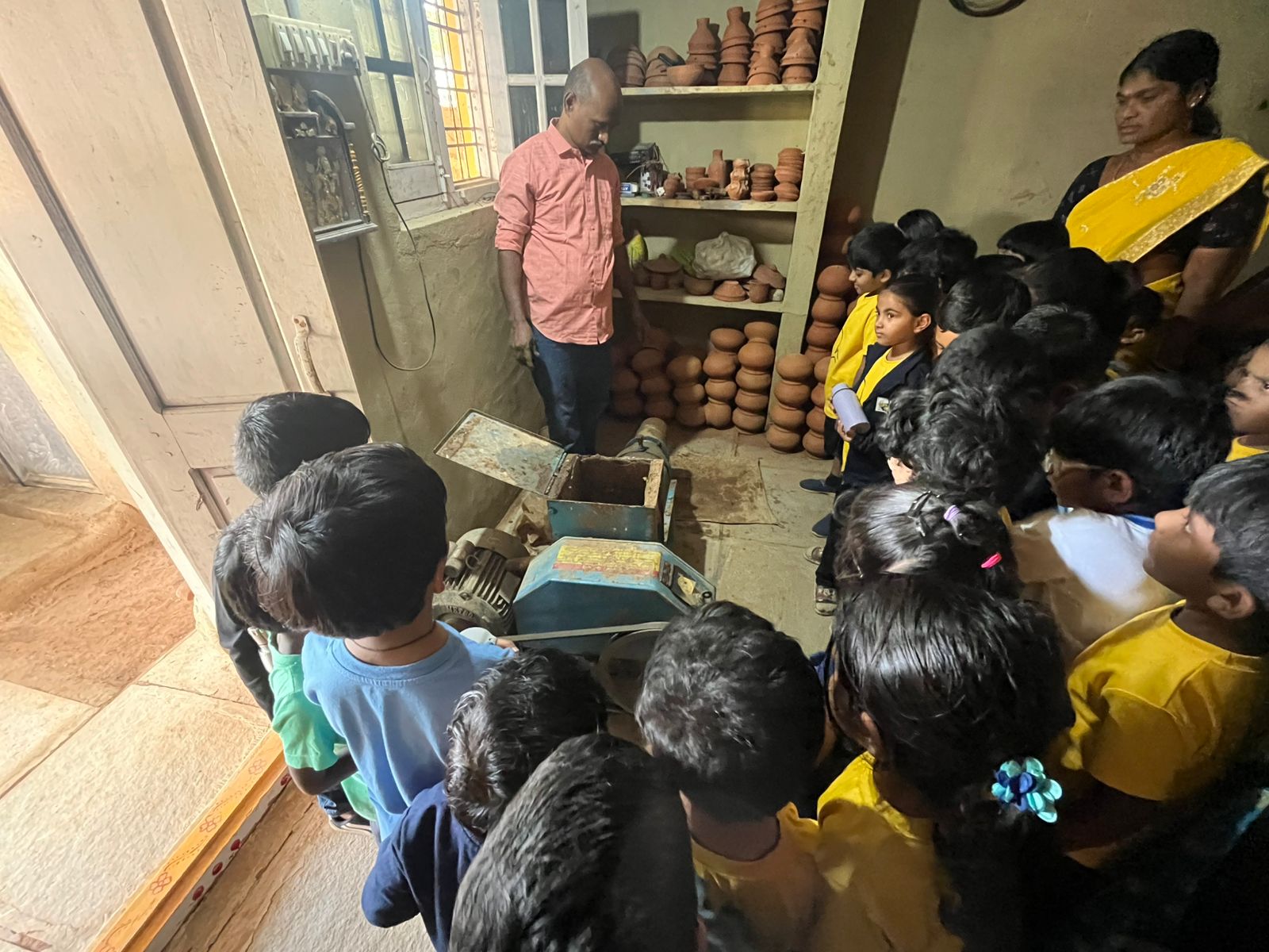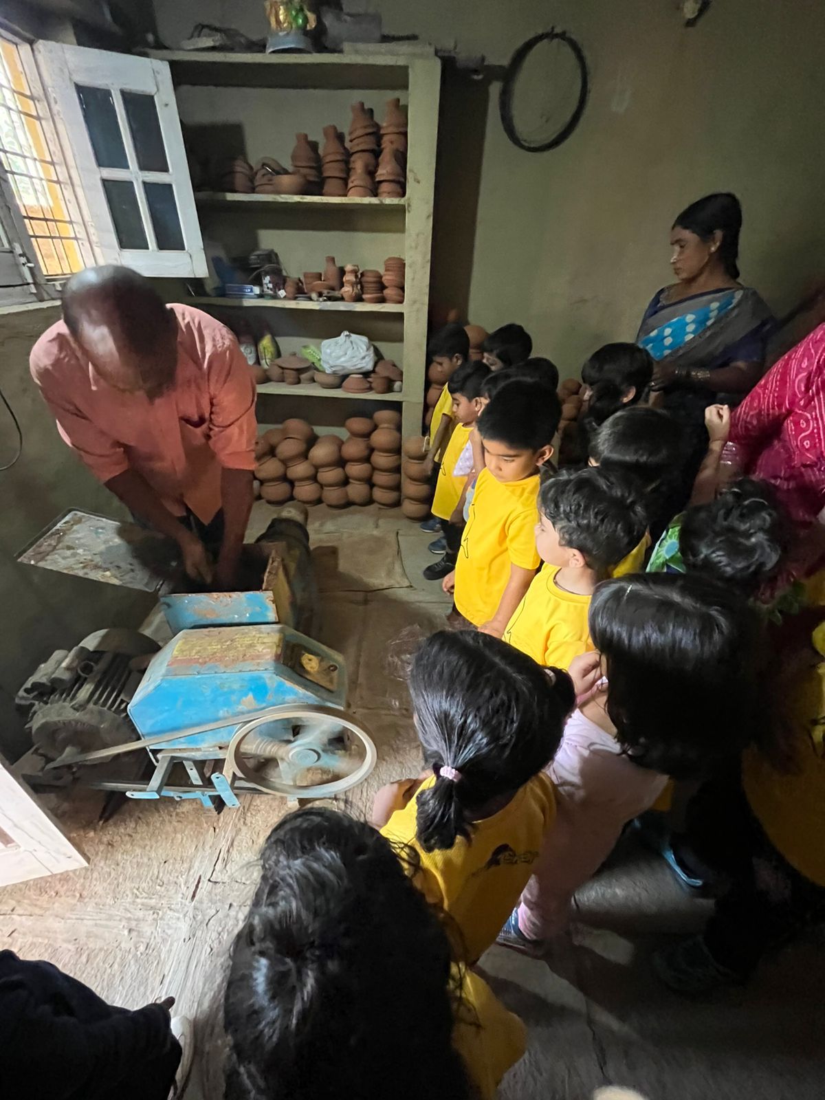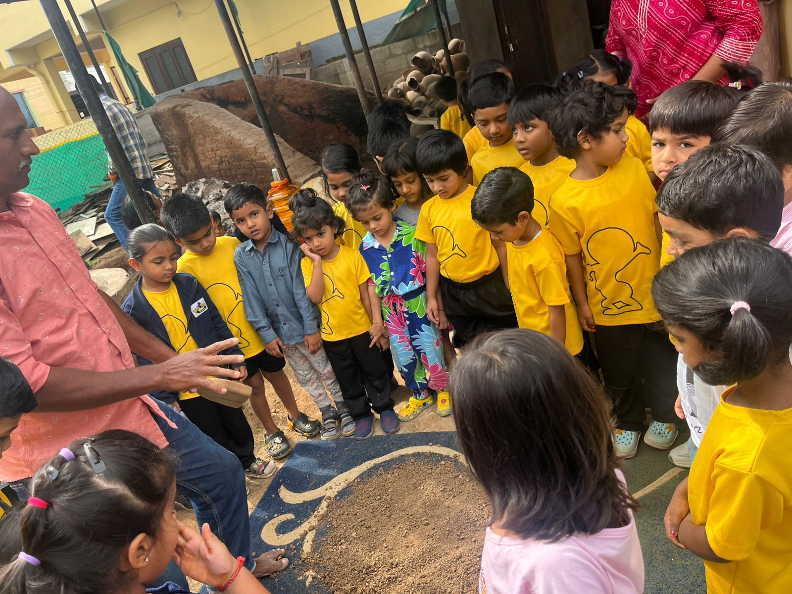Our Primary Montessori children went on an exciting visit to a pottery craft centre on 10th October 2025. The instructor demonstrated how raw mud is collected and softened by hitting it, then strained to remove impurities. It is then mixed with water and left for a few minutes to become smooth and workable. The softened mud is placed into a machine that turns it into fine clay, ready to be used for making idols, pots, and other clay items. The children observed how the clay is placed on the potter’s wheel and how different shapes can be formed by skillfully using hands while the wheel spins. The instructor also showed them an old oven used for baking the clay items after they dry, which makes them strong and durable. He explained that these baked clay products can be used for making flower vases, storing drinking water, and even for cooking. The children learned that clay is one of the earliest and most important inventions of human civilization.