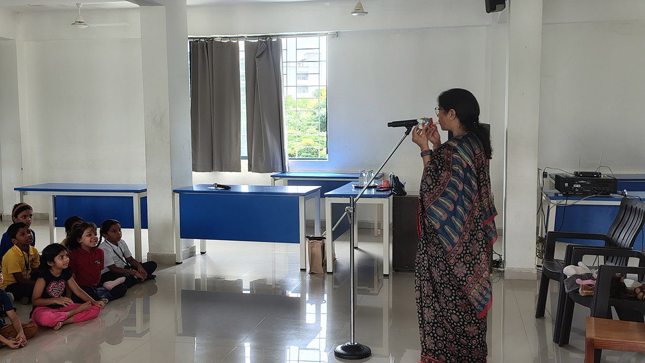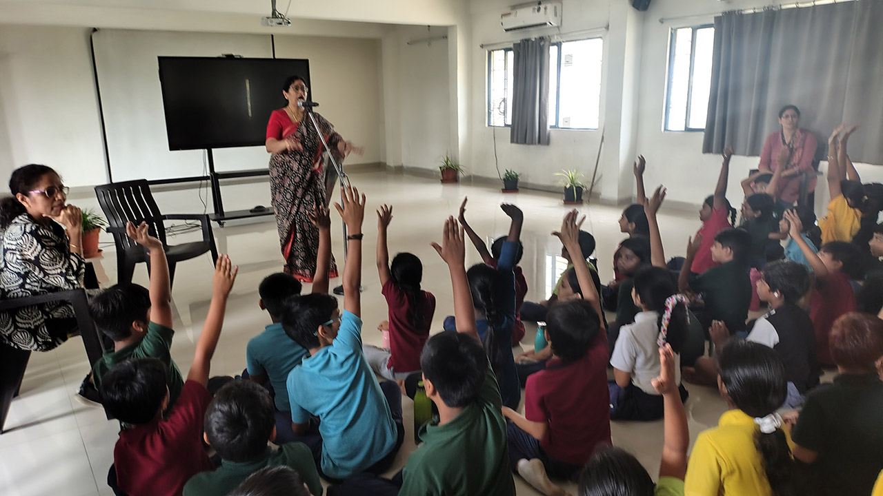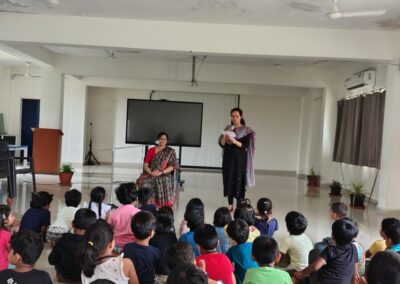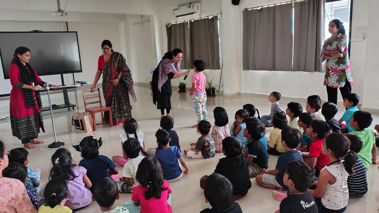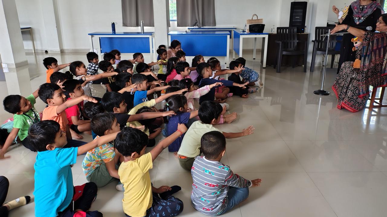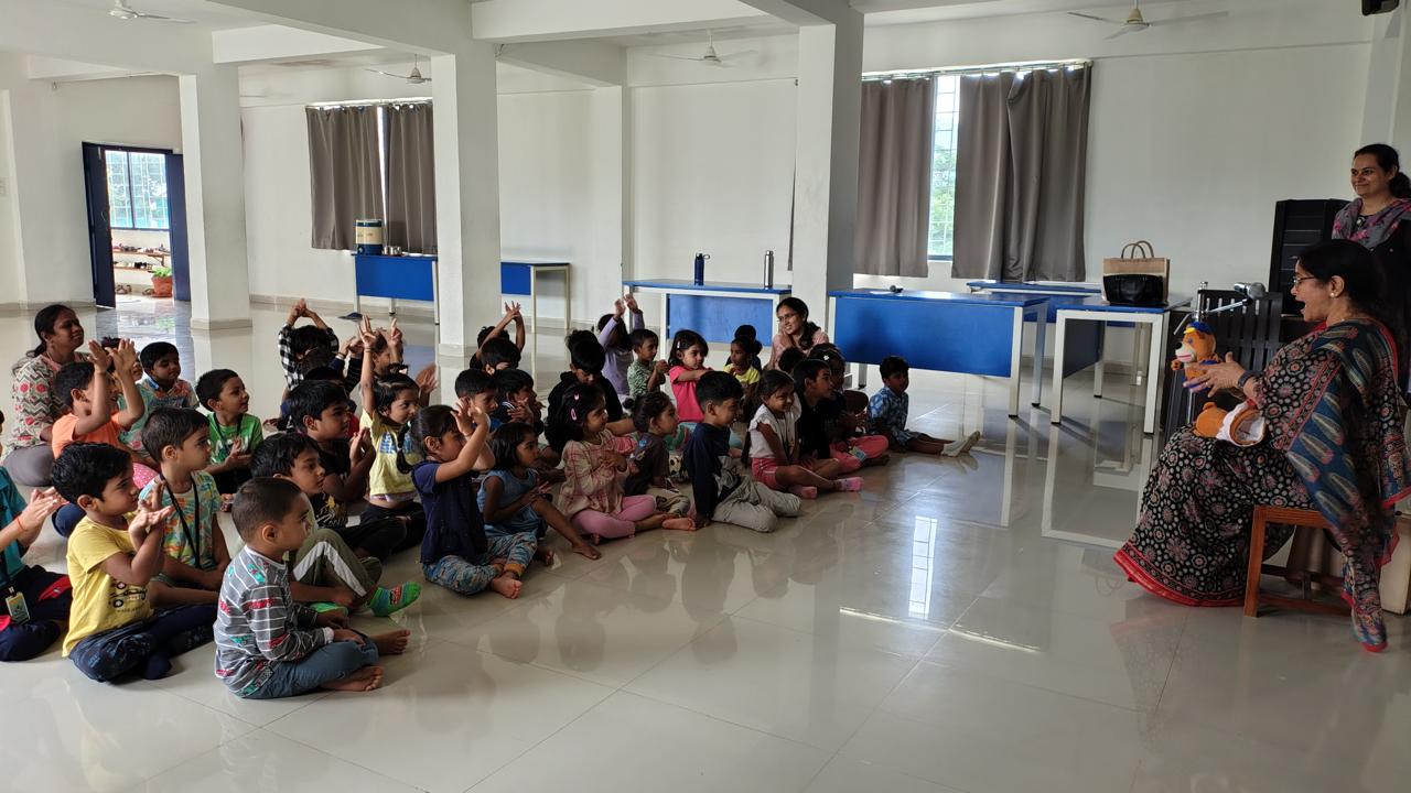 The Story Telling Session took place on 25th June, 2025 across PM, CBSE Wing Gr. 1 to Gr.5 and also at the Elementary Level. On June 25th, the Primary Montessori children enjoyed a lively storytelling session after snack time. The children were fully engaged, especially with the songs and the highlight of the session—the puppets. The interactive elements kept them captivated, making the experience both fun and enriching. Then Ms. Renu captured the imagination of Gr. 1 ,2 & 3 through her expressive narration, vibrant animal sounds, and interactive questioning. The story originated from the African folklore . Children were captivated by the characters and enthusiastically participated in mimicking animal actions and sounds with the hand puppets. The session not only entertained but also instilled important moral values, making it a joyful and meaningful experience for them. Finally, the children of Gr. 4 & 5 were a part of a humorous and meaningful tale about a foolish king whose careless actions led to some rather embarrassing consequences. Through the story, students grasped the importance of fulfilling responsibilities thoughtfully and the value of thinking critically and asking questions before acting impulsively. A pivotal moment in the story—when a child questions the king’s decisions—highlighted this moral effectively. Ms. Renu further encouraged the students to come up with a title for the story, and they responded with several insightful suggestions, reflecting their deep understanding of its message. She kept the students engaged throughout the narrative, involving them in every unfolding scene. The session ended with lively and thoughtful discussions, leaving the children with lasting lessons on mindfulness and accountability.