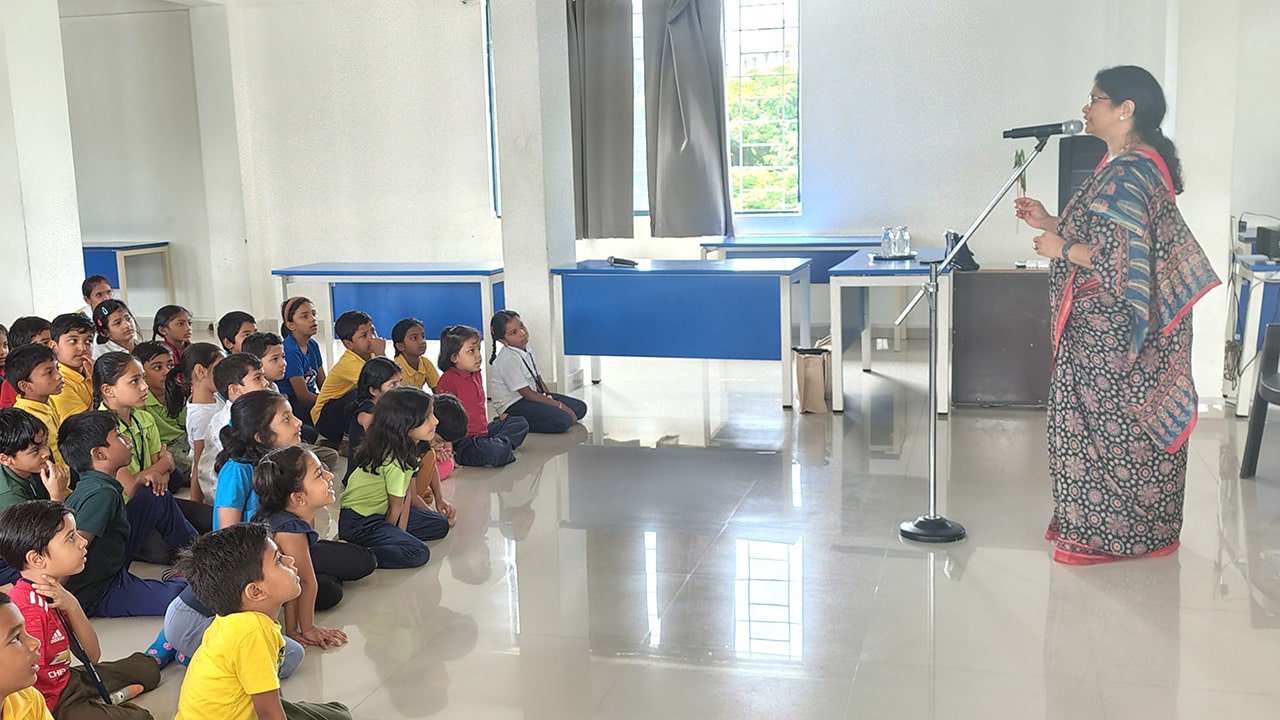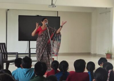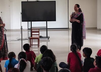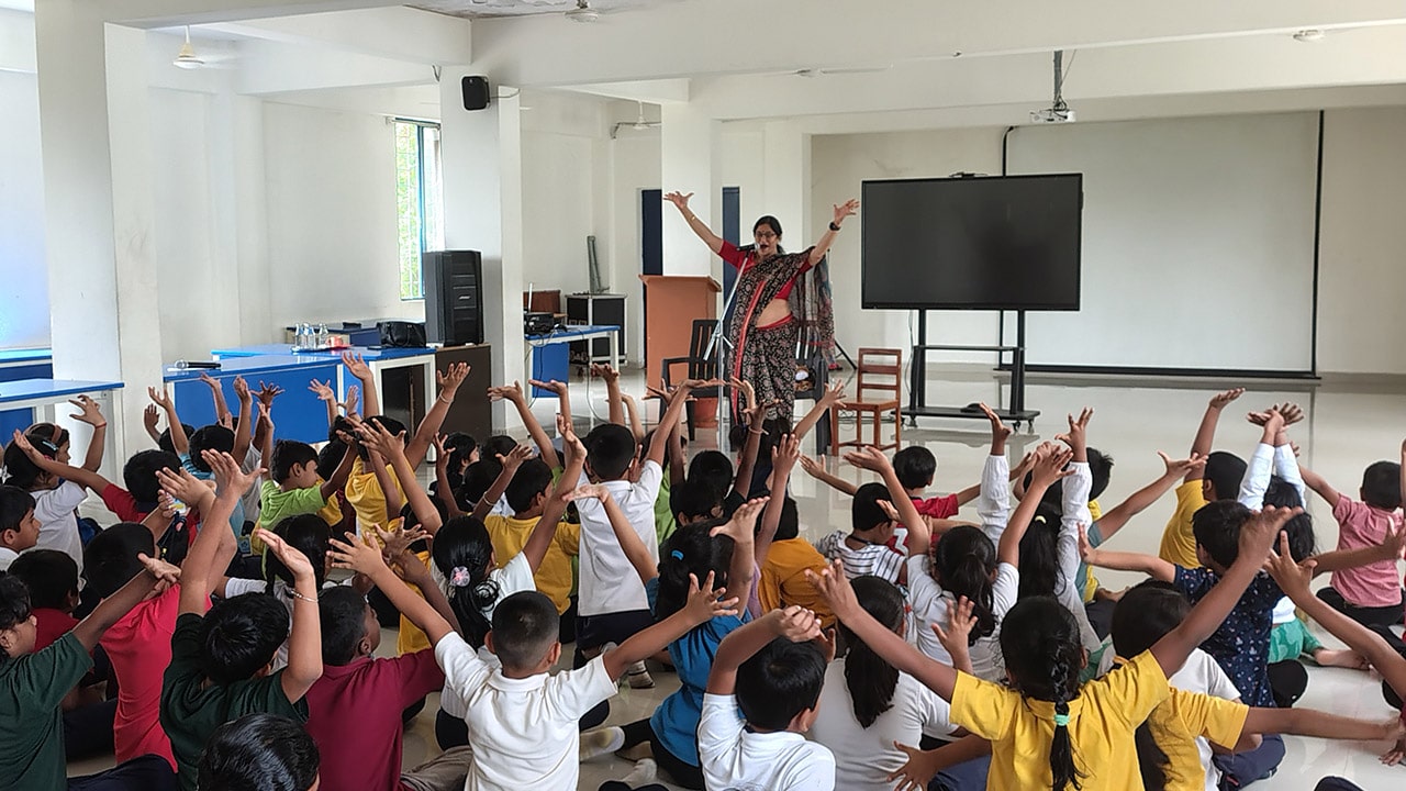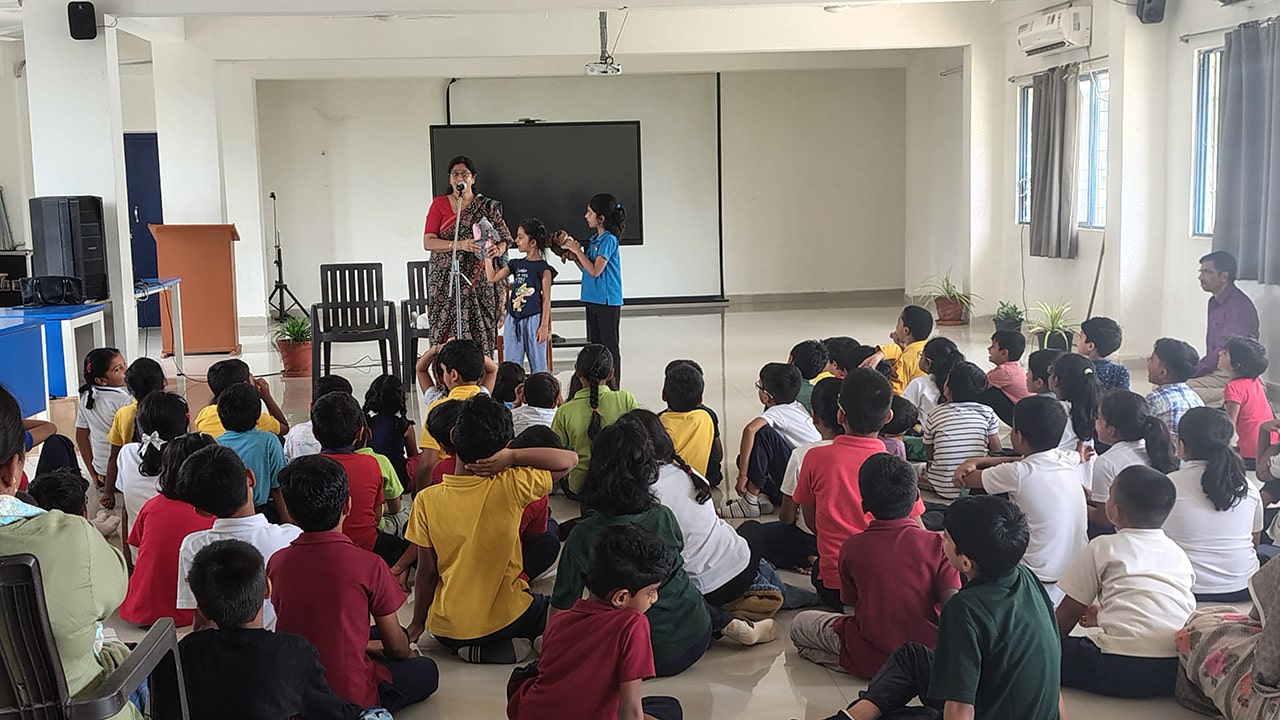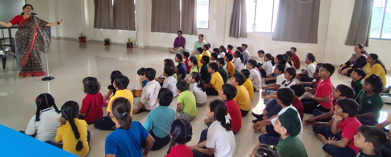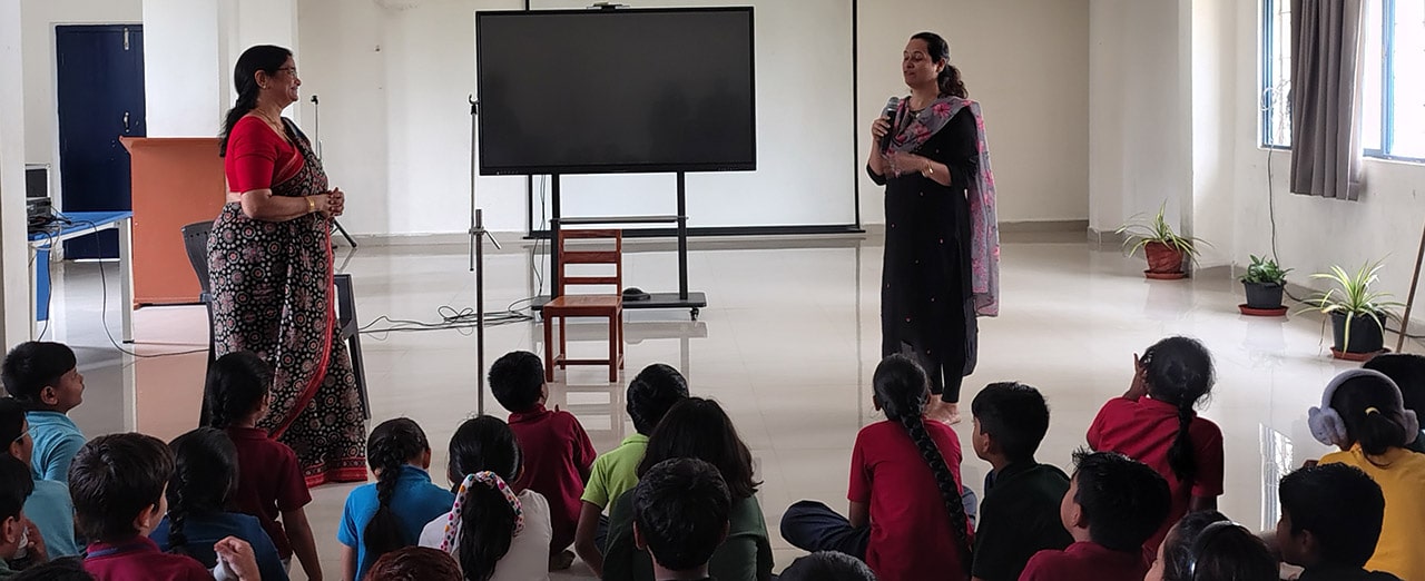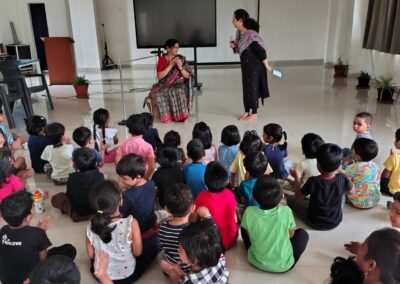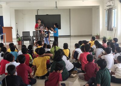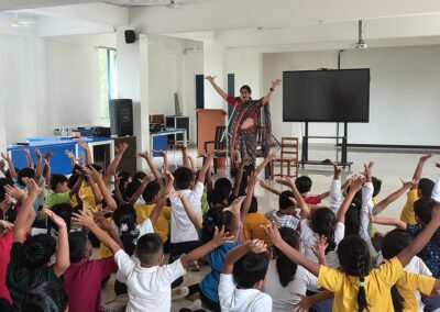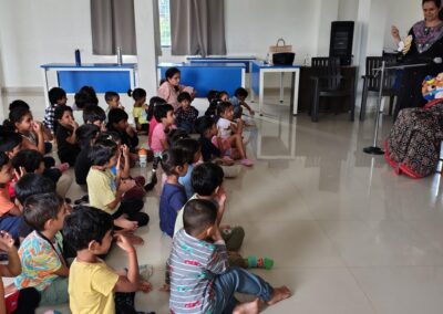The Story Telling Session took place on 25th June, 2025 across PM, CBSE Wing Gr. 1 to Gr.5 and also at the Elementary Level. On June 25th, the Primary Montessori children enjoyed a lively storytelling session after snack time. The children were fully engaged, especially with the songs and the highlight of the session—the puppets. The interactive elements kept them captivated, making the experience both fun and enriching. Then Ms. Renu captured the imagination of Gr. 1 ,2 & 3 through her expressive narration, vibrant animal sounds, and interactive questioning. The story originated from the African folklore . Children were captivated by the characters and enthusiastically participated in mimicking animal actions and sounds with the hand puppets. The session not only entertained but also instilled important moral values, making it a joyful and meaningful experience for them. Finally, the children of Gr. 4 & 5 were a part of a humorous and meaningful tale about a foolish king whose careless actions led to some rather embarrassing consequences. Through the story, students grasped the importance of fulfilling responsibilities thoughtfully and the value of thinking critically and asking questions before acting impulsively. A pivotal moment in the story—when a child questions the king’s decisions—highlighted this moral effectively. Ms. Renu further encouraged the students to come up with a title for the story, and they responded with several insightful suggestions, reflecting their deep understanding of its message. She kept the students engaged throughout the narrative, involving them in every unfolding scene. The session ended with lively and thoughtful discussions, leaving the children with lasting lessons on mindfulness and accountability.
