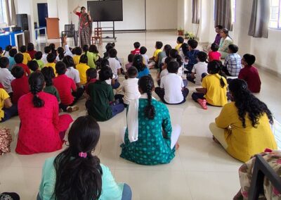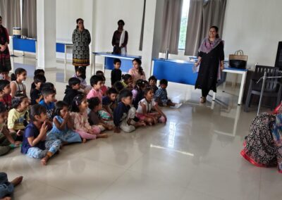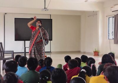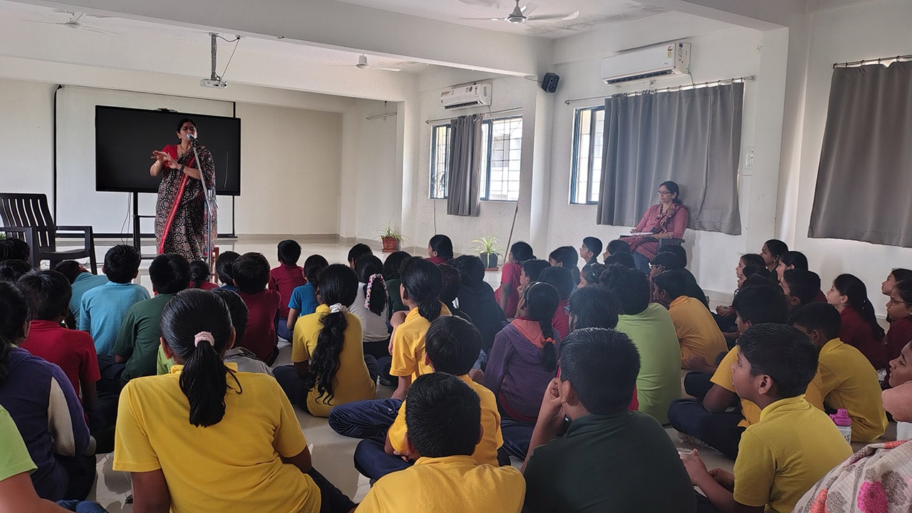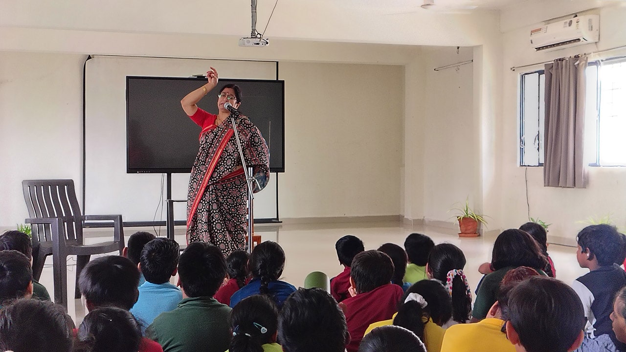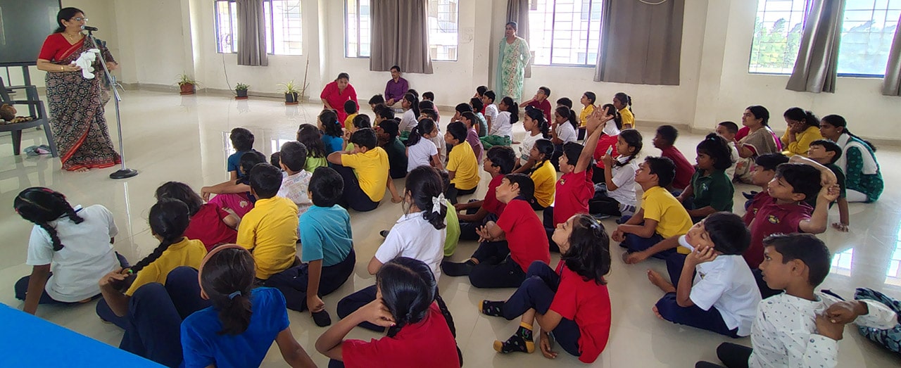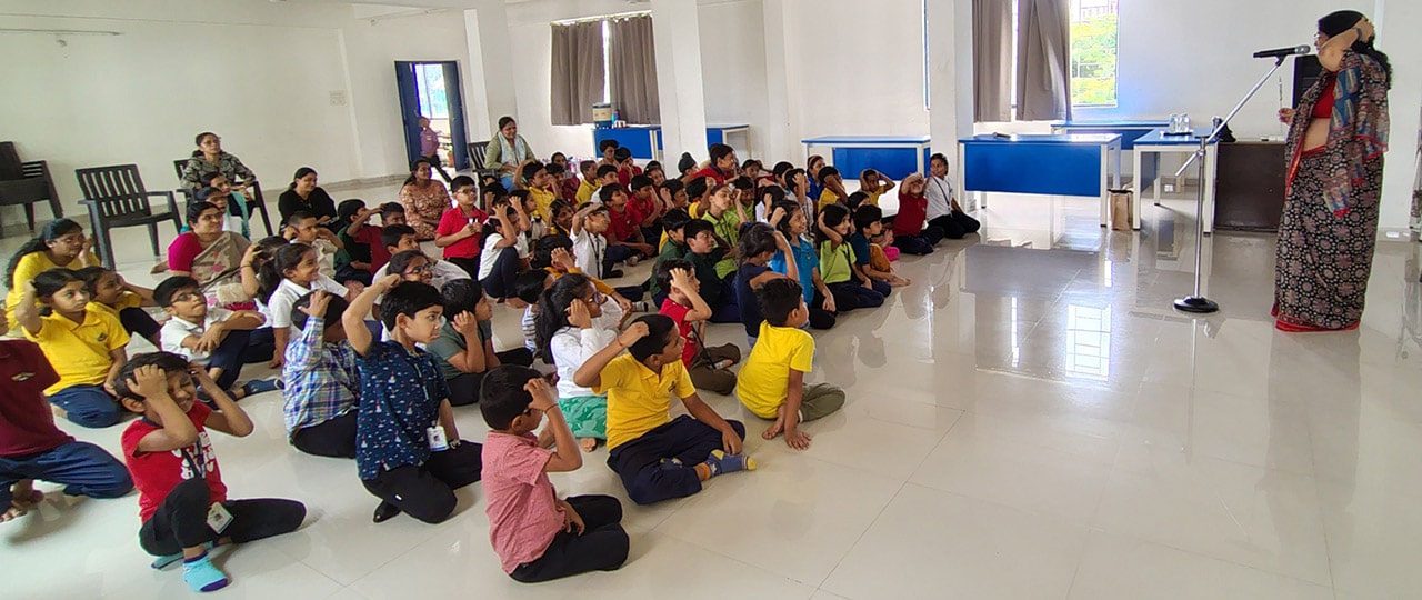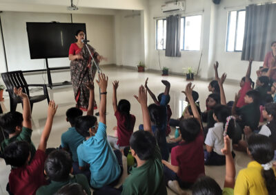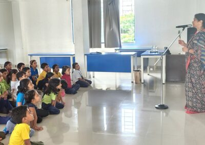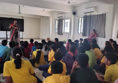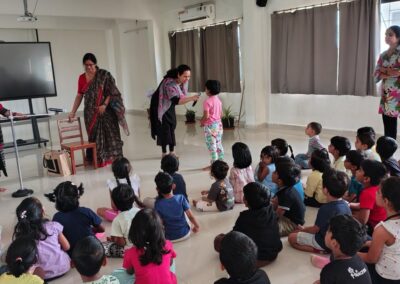 The Story Telling Session took place on 25th June, 2025 across PM, CBSE Wing Gr. 1 to Gr.5 and also at the Elementary Level. On June 25th, the Primary Montessori children enjoyed a lively storytelling session after snack time. The children were fully engaged, especially with the songs and the highlight of the session—the puppets. The interactive elements kept them captivated, making the experience both fun and enriching. Then Ms. Renu captured the imagination of Gr. 1 ,2 & 3 through her expressive narration, vibrant animal sounds, and interactive questioning. The story originated from the African folklore . Children were captivated by the characters and enthusiastically participated in mimicking animal actions and sounds with the hand puppets. The session not only entertained but also instilled important moral values, making it a joyful and meaningful experience for them. Finally, the children of Gr. 4 & 5 were a part of a humorous and meaningful tale about a foolish king whose careless actions led to some rather embarrassing consequences. Through the story, students grasped the importance of fulfilling responsibilities thoughtfully and the value of thinking critically and asking questions before acting impulsively. A pivotal moment in the story—when a child questions the king’s decisions—highlighted this moral effectively. Ms. Renu further encouraged the students to come up with a title for the story, and they responded with several insightful suggestions, reflecting their deep understanding of its message. She kept the students engaged throughout the narrative, involving them in every unfolding scene. The session ended with lively and thoughtful discussions, leaving the children with lasting lessons on mindfulness and accountability.